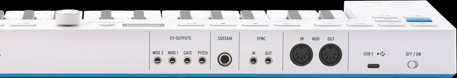 Slimkey keybed: 37 expressive keys with velocity & aftertouch.